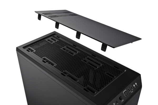 - Adjustable top cover vent with enhanced cooling options and mounting location for a radiator